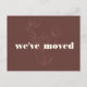 Let friends and family know about your new home in style with this modern “We’ve Moved” announcement postcard. Featuring a warm earthy brown background with delicate floral line art and bold typography, this design adds a sophisticated touch to your moving update.