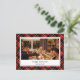 Unique, classic, trendy, pretty and decorative Holiday card. Cute Happy New Year greeting text message and room to customise or personalise with a photo and family name (or individual names) of your choice, on a classy black, white, yellow and red coloured plaid background.