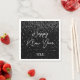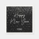 Custom New Year Glowing Silver Confetti On Black Napkin
