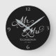 Add a romantic touch to your space with this elegant black and white "Mr. and Mrs." wall clock, easily personalised with your last names and wedding year. The classic calligraphic script and minimalist clock design offer a sophisticated look that fits beautifully in bedrooms, living rooms, or kitchens. Perfect for newlyweds or couples, this clock makes a lovely keepsake, wedding or anniversary gift.