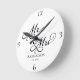 Add a romantic touch to your space with this elegant black and white "Mr. and Mrs." wall clock, easily personalised with your last names and wedding year. The classic calligraphic script and minimalist clock design offer a sophisticated look that works beautifully in bedrooms, living rooms, or kitchens. Perfect for newlyweds or couples, this clock makes a perfect keepsake, wedding or anniversary gift.
