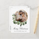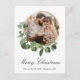 Personalise this Holiday postcard and share a special wedding photo from your special day. Modern and elegant wreath frame with green leaves and white flowers surround the photo, customisable and easy to use template. Edit the text "From the New Mr. and Mrs." with your last name, change the special message on the back and return address. With them all a Merry Christmas and keep the connection going with your wedding guests, family and friends.