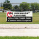 An outdoor Black, White and Red sign banner that can be customised. You can use it for the warning "No Overnight Parking / Violators towed away at vehicle owners's expense" or for any warning you want to. Just add your text if you want to change this template.