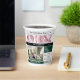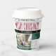 Newspaper-themed Christmas paper cups designed to look a special edition of Holiday Times, featuring your family photos offering a nostalgic and creative way to send festive greeting to your loved ones.