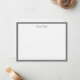 Custom Note Card is shown in the white linen card paper with a grey coloured border and a charcoal grey inner border trim, name text is in the same colour.