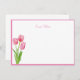 Custom Note Card shown in white with a cute spring tulips print and with a pink border trim.