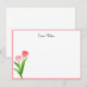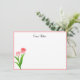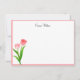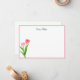 Custom Note Card shown in white with a lovely spring pink tulips with water droplets and with a pink border trim. Envelopes included