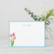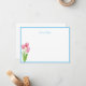 Custom Note Card shown in white with a cute spring tulips print and with a blue border trim.
