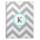 Show your personality with this fun and trendy chevron stripe spiral notebook. Personalise it with your monogram or name framed in a turquoise circle. Perfect for a journal, taking notes, work, school and home. Makes a great gift for all occasions. Click the "Customise it!" button to change the text size, text colour & font style.