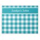 A customisable Notepad or Jotter with a teal and white check gingham pattern. Suitably adjusted for size, this design will also fit the smaller notepad.