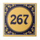 Pattern inspired by famous Portuguese tile-work, Azulejos. Perfect as home decor or as a gift for trendy person. Ceramic tile with stunning Azulejos. Personalise with your house number. Dark blue Azulejo