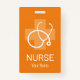 Custom nurse name badge with stethoscope logo. Clip or retractable lanyard string optional. Modern typography template design. Add your own name, job title, work function, etc. Personalized name tags for RN nurse, medical personnel, hospital staff, healthcare workers, paramedic, company employees, surgeon, physician, volunteers, coworkers, colleagues, rescue workers, emergency responders, teachers, nurses, business managers, care home guests, visitors, clients, nursing school students, doctor, paramedic, vet etc. Customizable colors and lettering. Basic layout with clear easy to read letters. Change quantity to get the cheap bulk price. Cheerful bright orange color. Very recognizable but other all color combinations are possible too. Vertical shape.