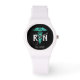 Custom Nurse RN Turquoise Caduceus White Silicone Watch is a professional nurse's watch with the medical symbol centred, "RN" in white on a black background with white band. Graduation year is also customised on lower watch face. Makes a great gift idea for nurses.