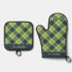 Custom Olive Green White Black Plaid Pattern Oven Mitt & Pot Holder Set