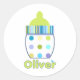 A cute and contemporary custom designed baby bottle for Oliver on gift items and apparel for the new baby and his new mum and dad too!
