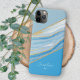 Custom Ombre Bright Azure Blue Marble Art Pattern iPhone Case