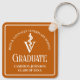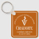 This custom orange veterinary graduation keychain features white typography for a class of 2024 graduate. Customise with your graduating year under the medical caduceus for a great personalised veterinarian gift.