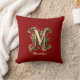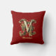 Custom Ornate Monogram M Christmas Red Gold Cushion