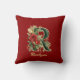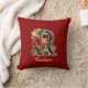 Custom Ornate Monogram R Christmas Red Gold Throw Cushion