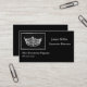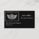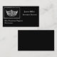 This custom business card template is shown in a black colour with a sample text in white and has a pageant crown print. Customise and change the sample information to yours.