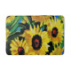 This custom bath mat features painted sunflowers in bold visual acrylic paint.