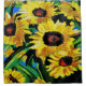 This custom shower curtain features painted sunflowers in bold visual acrylic paint.