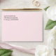 Sweet custom baby shower invitation envelope done in a pale pink, with a white with pink polka dots, on the inside of the envelope. Graphics of a pretty pink scalloped edge decorates just below the back flap. Dark grey return address, on the front, is ready to personalise for your shower. Lovely finishing touch to our Pink flowers and polka dot baby shower invitations.