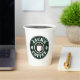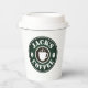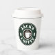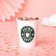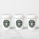 Custom paper coffee cups with lid party supplies. Personalise with your own barista name, company slogan or other text. Custom colours. Great for Birthday, BBQ, party, wedding, office, and more. Double sided print. Disposable party supplies with or without lid. Vintage coffee bean logo with hot cup silhouette. Also great for business owner, shop, store, cafe, bar, event, festival, outdoor market etc. Serve your own unique latte or espresso.