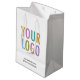 Sometimes you only need a few custom printed gift bags, so here is a great way to get just what you need in the colour and design you want. Personalise this gift bag with your own company logo, custom text, and colour. Available in matte or glossy finish. The medium gift bag is 7 inch x 4.5 inch x 10 inch. Made by Digiwrap. No minimum order quantity and no setup fee.