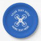 Custom paper party plates with drone logo. Cool design for kid's Birthday party, BBQ and more.
