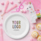 Personalise our paper plates with your company logo and custom text. Custom logo paper plates can increase your brand awareness while serving your customers. FDA approved. Available in round and square shape. Small minimum order quantity and no setup fee.