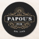 Custom Papou's Pub Home Bar Year Established Round Paper Coaster