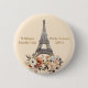 Personalize this chic Paris, France vacation button for your family reunion or girls trip to Europe. An beautiful watercolor drawing of the Eiffel tower with flowers at the bottom. A lovely keepsake souvenir gift.