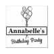 Celebrate a birthday party using this cute stamp for your invitations! It has several balloons tied with a bow, template name "Annabelle's" text in the middle and "Birthday Party" template script at bottom. Two templates created for you.