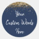 Custom Party Favour Birthday Navy Blue Gold & Whit Classic Round Sticker