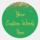 custom birthday party round sticker, sweet 16 quinceanera 40th 50th, glitter wedding reception gift label, personalised anniversary 30th 21st 15th, bachelorette sixteen 16th bridal 20th, twenty-fifth 25th twenty first daughter, girl wife twinkle sparkle granddaughter, grandson son boy 5th fifth, 10th 80th 18th hen night, green gold for baby shower