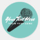 Microphone image stickers template with vector logo design. Personalised favour stickers or envelope sealers. Professional layout suitable for singer, singing, vocal coach, music industry, sound technician, musician, performer, corporate speaker, stand up comedian, audio equipment expert, dj, deejay, disc jockey, entertainer, sound engineer, producer, stage builder, voice recording, radio host, interviewer, journalist, news reporter, electronics specialist, entertainment and other related jobs or work. Classy black and white isolated mic icon with custom name and background colours. Create your own unique round stickers for your professional shop, office, studio, performances, gigs, boss, wedding party, event etc. Modern graphic icon with stylish elegant script typography. Turquoise blue or custom colour background.