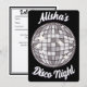 Custom invite for a disco birthday party. Invite shows illustration of faces with a disco ball. Perfect invite for birthday, bachelorette, or girls night.