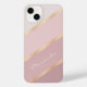 Contemporary girly pastel mauve, dusty rose, and blush pink coloured striped cell phone case. With room to customise with a name, monogram, or initials of your choice. Beautiful, modern, and cool cover for the trend-savvy and art-loving hip trendsetter, artsy motif lover who wants to protect their phone from dust and dirt, wear and tear. This design is available for Apple iPhone 6, 7, and 8 Plus, 10 or X, XR, XS, 11, 12, 13, 14, 15 Plus, and Pro Max cellphone cases. Show off your style, look fashionable, and feel stylish with a unique design on a mobile device accessory of your choice.