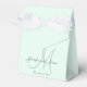 Personalised Pastel Mint and Grey Monogram Wedding Favour Boxes. Design by Elke Clarke ©. Available at www/zazzle.com/monogramgallery*. Elegant script fonts. Customise with your bride and groom names, wedding date and wedding colours.