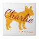 This pastel orange French Bulldog accent tile can be customized with your name. Great for kitchens, bathrooms, or as a stylish gift for dog lovers.