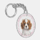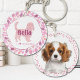 This pastel pink keychain features your dog's photo on one side and a festive pastel pink cavalier King Charles Spaniel silhouette design with the phrase 'I love my cavalier.' and dog’s name on the other. Personalise with your name and cute photo to create a unique pastel-coloured keychain that makes a thoughtful present for friends, family, coworkers, or any pet lover. Great for everyday use, birthdays, or as a pastel accent at home. Perfect pastel gift for cavalier lovers – customise with your name and photo today!