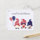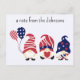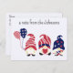 Cute red white blue gnomes holding stars and stripes balloons decorate the front of the postcard with "a note from ...." text at top. Both sides have a subtle 'ghost white' background. Choose semi-gloss or matte paper. A set of these postcards makes an awesome year-round gift for that patriotic friend or family. Easily personalise front and back using the Template provided. Made and printed in the USA, size is 4.25" x 5.6". Read the reviews! See "About This Product" at side for more information.