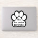 This version of the customised pawprint decal is white with black text. It is available in several sizes suitable for phones, water bottles, laptops, notebooks, sports gear, etc. Anyplace you need a durable sticker.