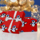 This elegant Christmas wrapping features cute custom wintry penguins against a beautiful red background! Credit: Public Domain