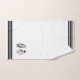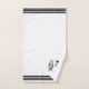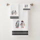 Three black stripes on white and custom penguin couple image. Elegant modern towel set.