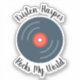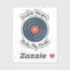 Two lines of customisable text highlight this "rocks my world" vinyl record sticker.