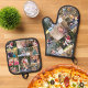 Custom Personalised 17 Photo Collage Gold Monogram Oven Mitt & Pot Holder Set