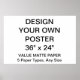 Custom printed personalised 36" x 24" HORIZONTAL VALUE MATTE PAPER POSTER Blank Template. Design, create, make your own. Your photo, image, text, logo, graphics in edge-to-edge full colour print. ARCHIVAL PAPER is 55 lb., 10.4 point thick, has a matte finish with a smooth surface, and is recommended for professional photography and graphic art. It is fade-resistant with 95+ years archival rating. Best for high quality, long lasting home and office decor, and for Christmas and birthday gifts.
