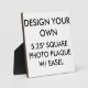 Custom printed personalised 5.25" SQUARE PHOTO PLAQUE Blank Template. Design, create, make your own. A stunningly crisp dye-sublimation print of photo, image, text giving a professional display without a frame. Hardboard panel with attached easel stand, designed for either portrait or landscape display. UV resistant glossy coating protects from scratches and fading for years. Easy wipe-clean surface.